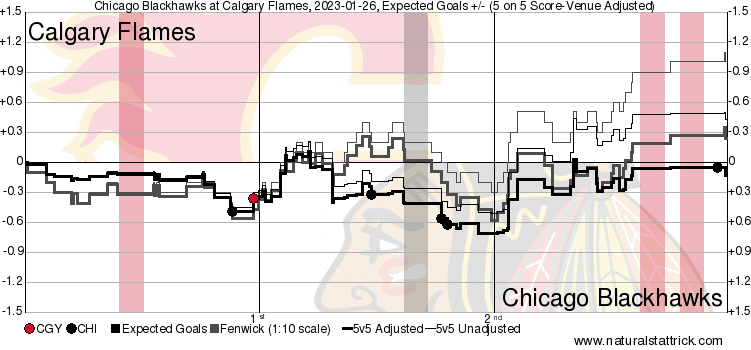 Corsi Clown – Dillon Dubé (44.83%) and linemates Lindholm (47.24%) and Toffoli (47.62%) were the only line to escape the blender in the late first period. I didn’t mind the new look lines and don’t think too many of the goals were outright their problem. This game I point a lot of my fingers at the defence and their lack of ability to be physical on the Blackhawks when they drove the net. Chicago was able to stick-handle around most of the Flames and Markstrom had to come up huge on multiple occasions. That’s where to start dissecting this one – in my opinion.