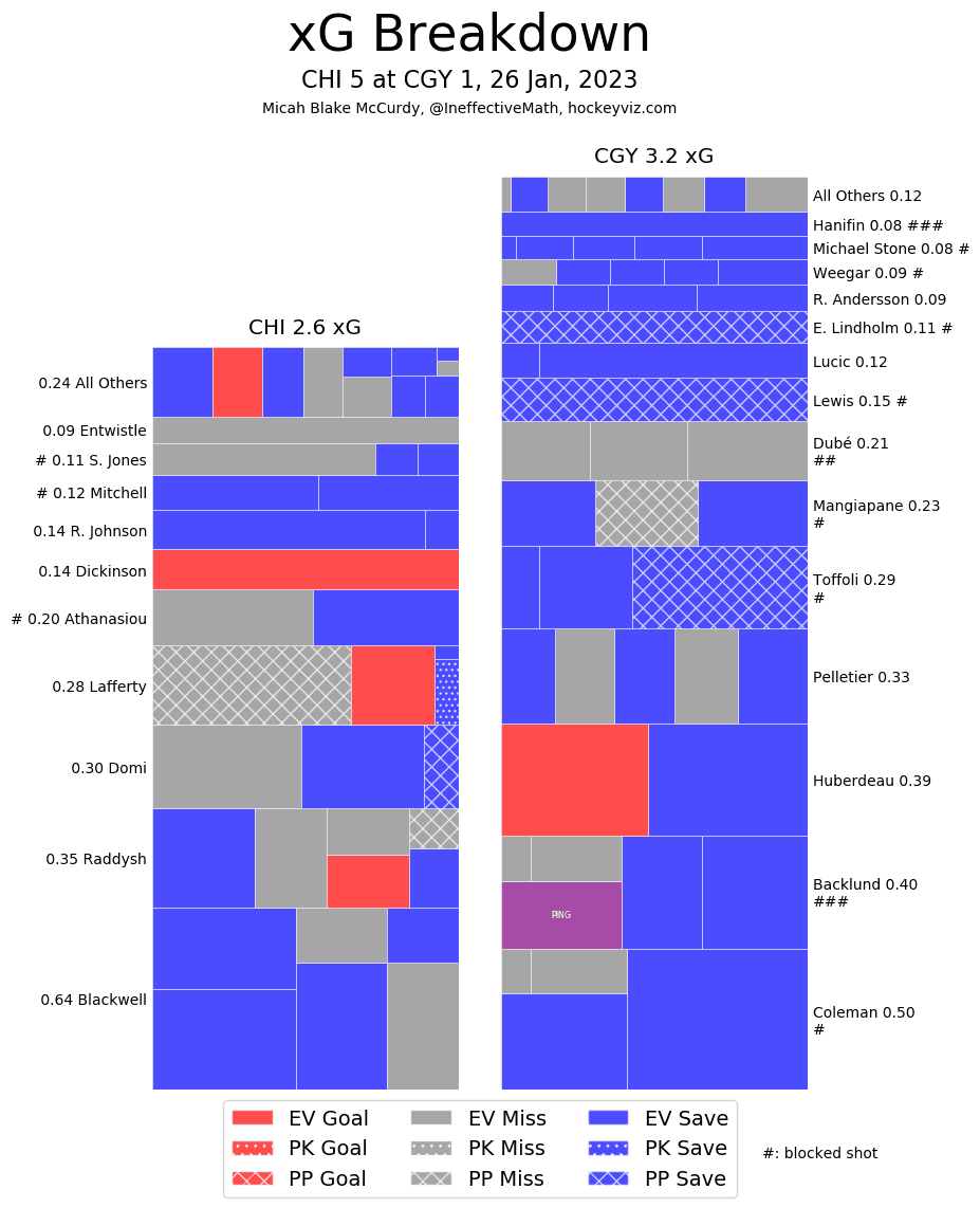 (Stats compiled from Naturalstattrick.com // Game Score from Hockeystatcards.com // xG and Under Pressure charts from HockeyViz.com // Game Flow and Shot Heatmap from NaturalStatTrick.com)
