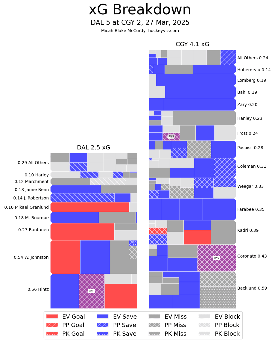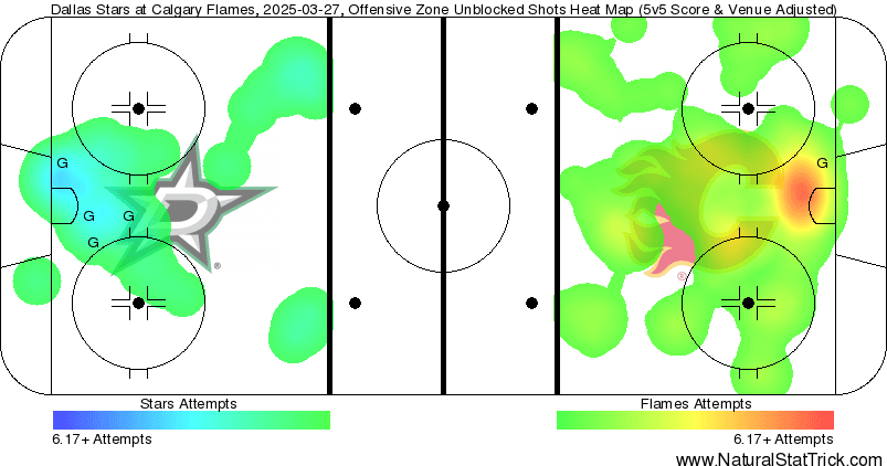 In The Crease – One of the best days for the team was met with one of the roughest performances Wolf has had to date in his career. Yes, there were defensive lapses, but that hadn’t stopped him the rest of the season. Dallas is a really deep team and any line can get the better of you with one quality opportunity. It still can’t be Wolf’s responsibility to bail the Flames out of every single game. He’s certainly stolen more games than he’ll ever lose based on his unique developmental trajectory. Him not being able to get those extra saves when the defence does break down is going to happen – the offence needs to respond with some goals. Unfortunately for Calgary Casey DeSmith and his posts had plenty to say about that.