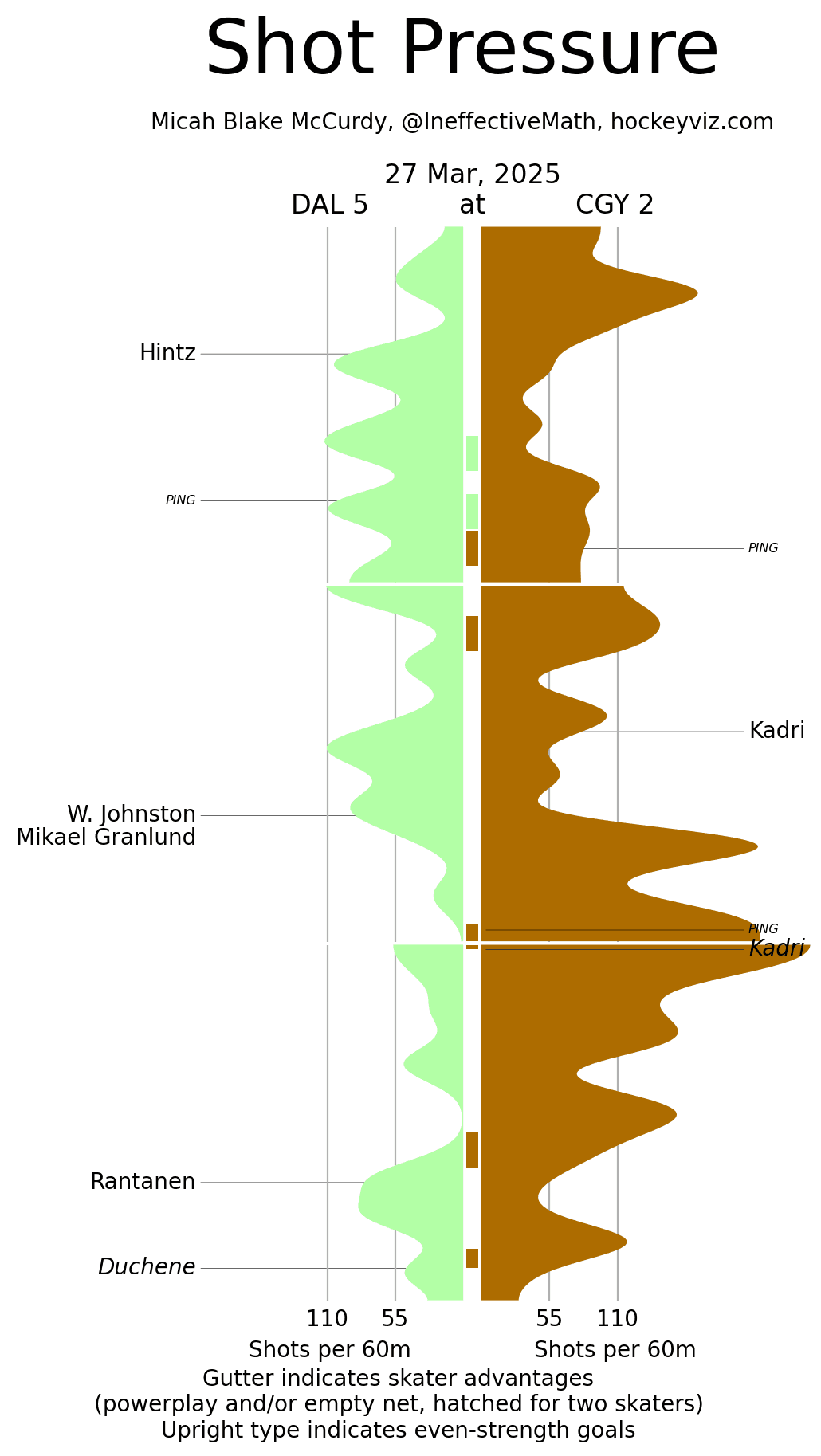 (Stats compiled from Naturalstattrick.com // Game Score from Hockeystatcards.com // xG and Under Pressure charts from HockeyViz.com // Game Flow and Shot Heatmap from NaturalStatTrick.com)