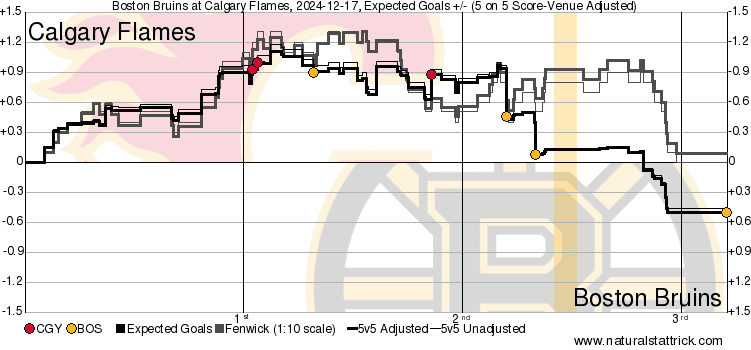 Taken By Chance – Over six high danger chances for the Flames with MacKenzie Weegar (69.57 SCF% || 51.57 HDCF%) on the ice, a team high. Two players were out there for both a 5v5 goal for and against, they were Rasmus Andersson (70.34 per cent || 65.09 per cent) and Matt Coronato (51.46 per cent || 41.82 per cent). I felt Coronato had himself a strong game. He’s become quite effective at transitioning the puck through the neutral zone while cutting down on turnovers. He’s quietly been finding more space and directing more pucks to the net. Two apples tonight for the young man as he continues to learn and grow.