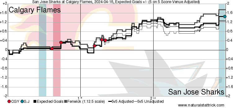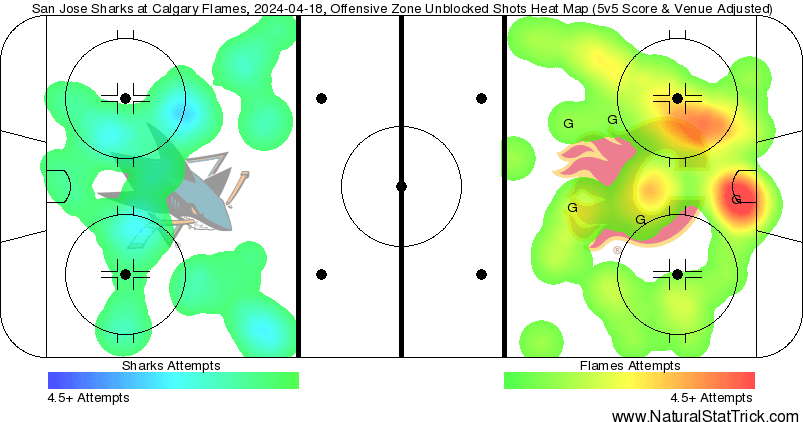 In The Crease – The entire fanbase let out a collective groan when Pospisil got a penalty in the last 2 minutes. Our worst fears were realized as Zetterlund scored on the power play in the dying seconds to wipe out Dustin Wolfs first career shutout bid. 1.64 expected goals against with no 5v5 goals. It was a solid performance for Wolf, who no doubt was bored for long stretches, will end the season 7-7-1.