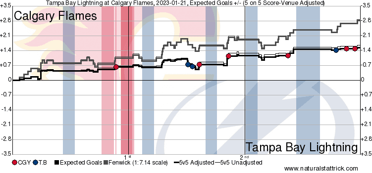 From the minute the puck dropped Calgary showed determination and fight throughout the lineup. A definitive group effort to always fight for the puck even if it had to be a bit too aggressive. Tampa responded with the same level of aggression leading to a bunch of special teams time and a lot of broken up 5v5 play. This was Calgary’s game to lose so it’s a real positive they found a way to find that two goal lead not once, but twice down the stretch. Just one game, here’s hoping it sparks a turnaround in the results of some future games.