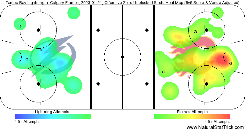 (Stats compiled from Naturalstattrick.com // Game Score from Hockeystatcards.com // xG and Under Pressure charts from HockeyViz.com // Game Flow and Shot Heatmap from NaturalStatTrick.com)