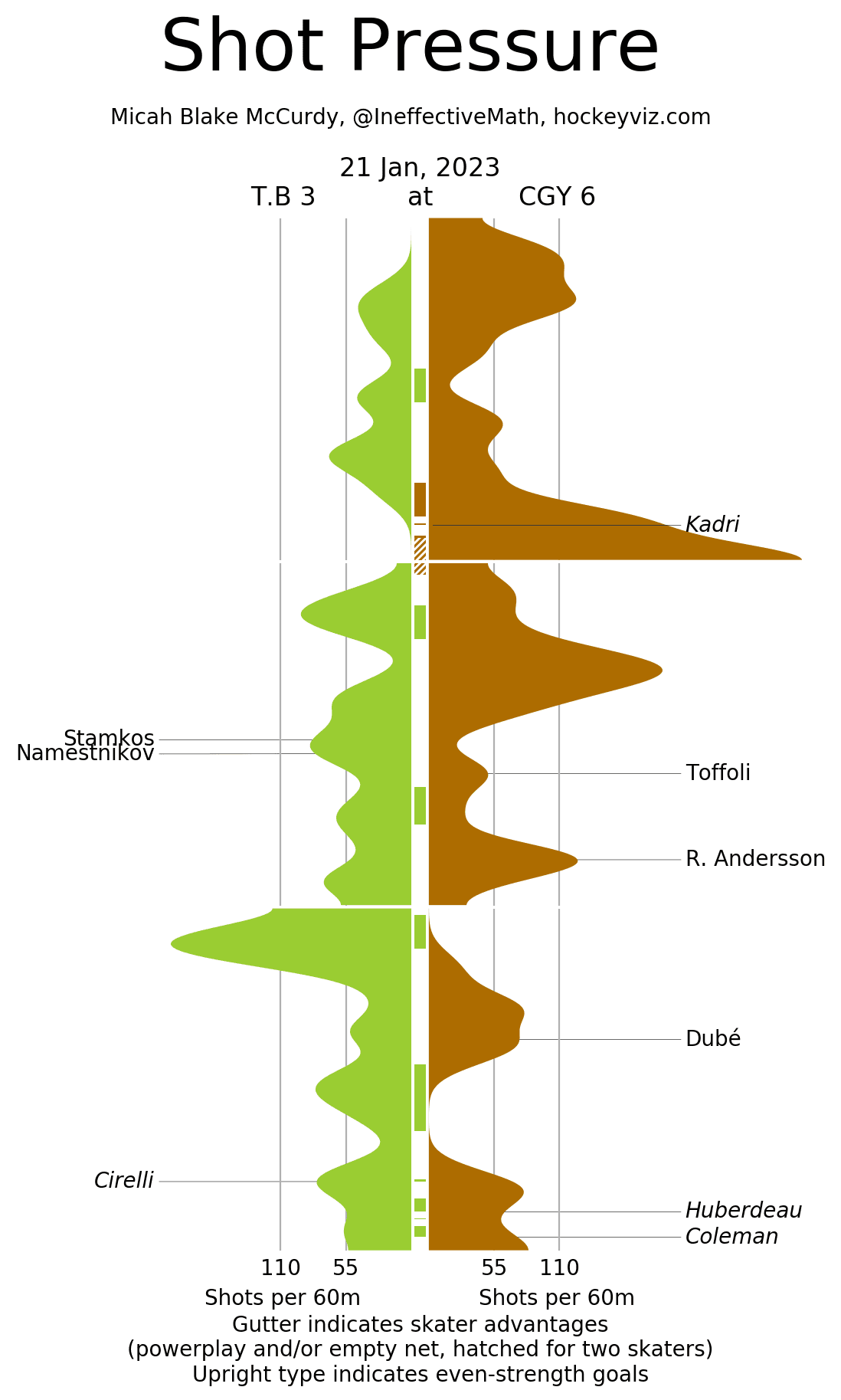 It’s a Team Game – 5v5 in the third period Tampa Bay got no high danger chances. The Cirelli whack in goal was with the goalie pulled so it doesn’t count. Calgary was extra efficient at the puck retrievals in their own zone and instead of bracing for impact they prioritized getting it up on the breakout. That is the pace you’ll hear coaches talk about, they don’t want to give other teams time to mess them up. Know what your options are and pick one quickly – let’s get the puck out of our zone and into theirs. Simple enough and executed quite nicely Saturday afternoon in Calgary.