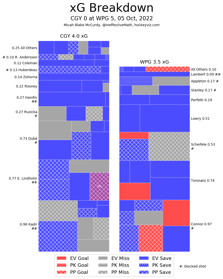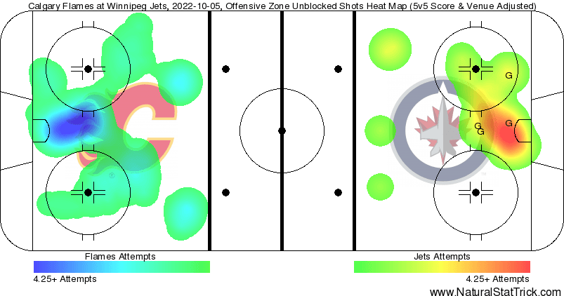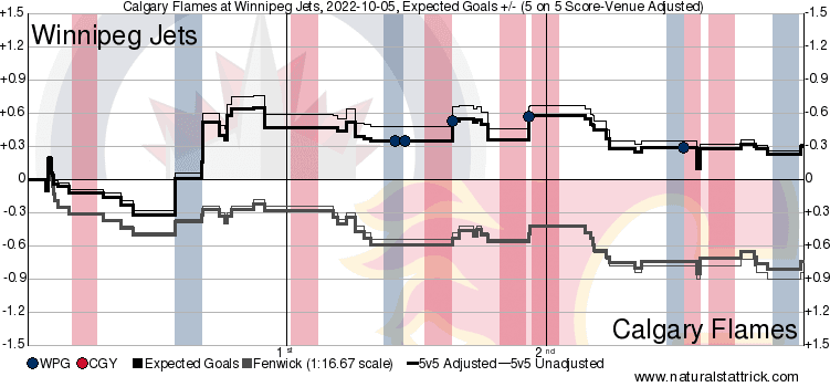 One of the weirdest game flow charts i can remember – possession favours Calgary and quality favours the Jets. A rare occurrence for everyone that wasn’t the Carolina Hurricanes from 2017-2020.