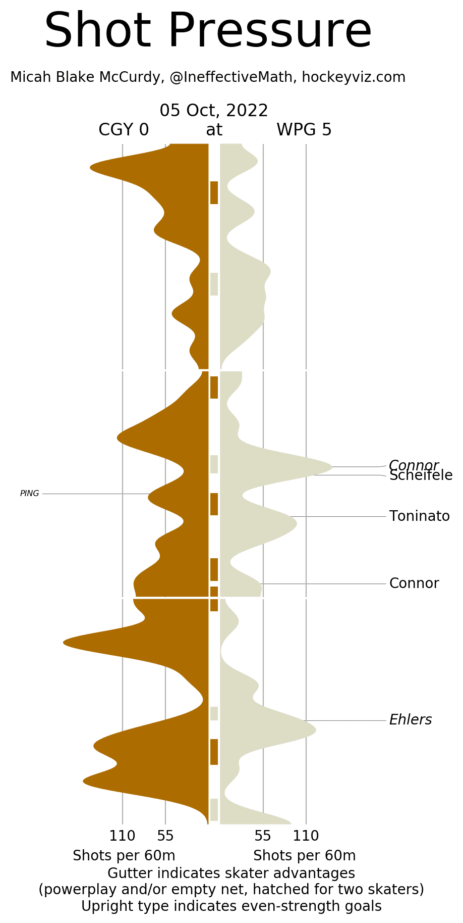 Calgary had pressure and chances all throughout the game – nothing went in. Frustrating to watch for sure, probably even more frustrating to play. The Jets scored a lot of those goals at the start of the pressure spike – translating into after they scored they applied more pressure. Great follow up shifts from the road team helped keep Calgary in the grind.