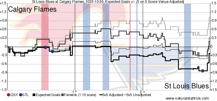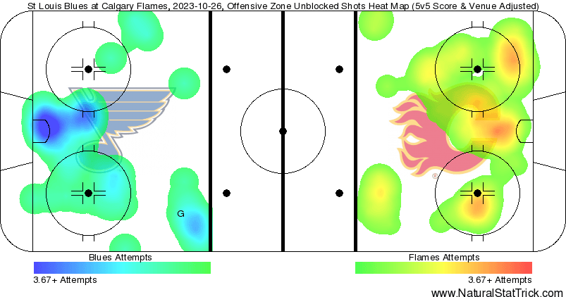 In The Crease – Finally a section where it can be nothing but positivity. Markstrom has looked like his old Vezina finalist self this season and the team in front of him as responded with terrible play. He is not going to be perfect every night, but some run support wouldn’t hurt. He was forced to make more than a handful of 10 bell saves to keep the score 2-0. 2.07 expected goals against is the largest 5v5 total he’s faced this year (if I recall correctly). The blame finger does not get pointed anywhere near the Flames starting goaltender to start the season.
