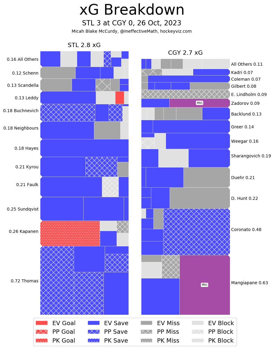 (Stats compiled from Naturalstattrick.com // Game Score from Hockeystatcards.com // xG and Under Pressure charts from HockeyViz.com // Game Flow and Shot Heatmap from NaturalStatTrick.com)