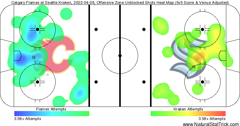 Like was said earlier – the Kraken hardly shot the puck. Calgary was able to somewhat surround the crease despite having rough last couple of games. Defensively this was still considered above average for the Kraken, but not enough for them to escape with the dub.