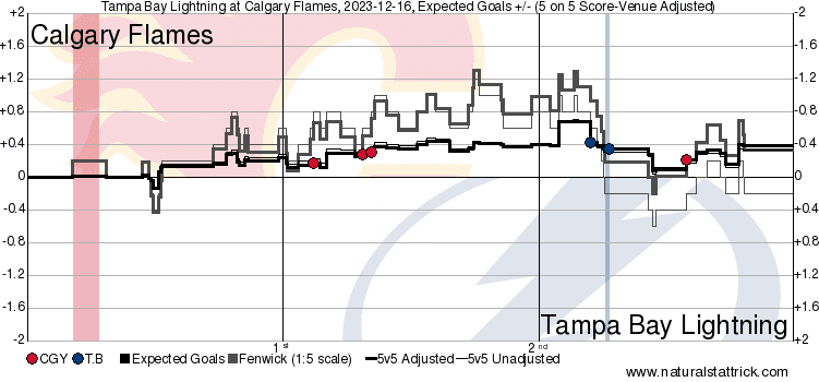 It’s a Team Game – The first period took a long time to feel like it got started with the shots on net being 1-1 roughly halfway through the opening frame. No, not goals at 1-1, the shots. Tampa was creating next to nothing, but Calgary still hadn’t found much of their swagger yet. The second period became the Flames from the start as they were scoring in a blink-and-you’ll-miss-it fashion. The thing about those goals though is they weren’t all high danger chances. In fact over the Flames recent scoring burst a lot of the ones going in are ones the other goaltender should have (Zary tonight, for instance). The Flames are finally getting some positive bounces and finding ways to get some standings points.