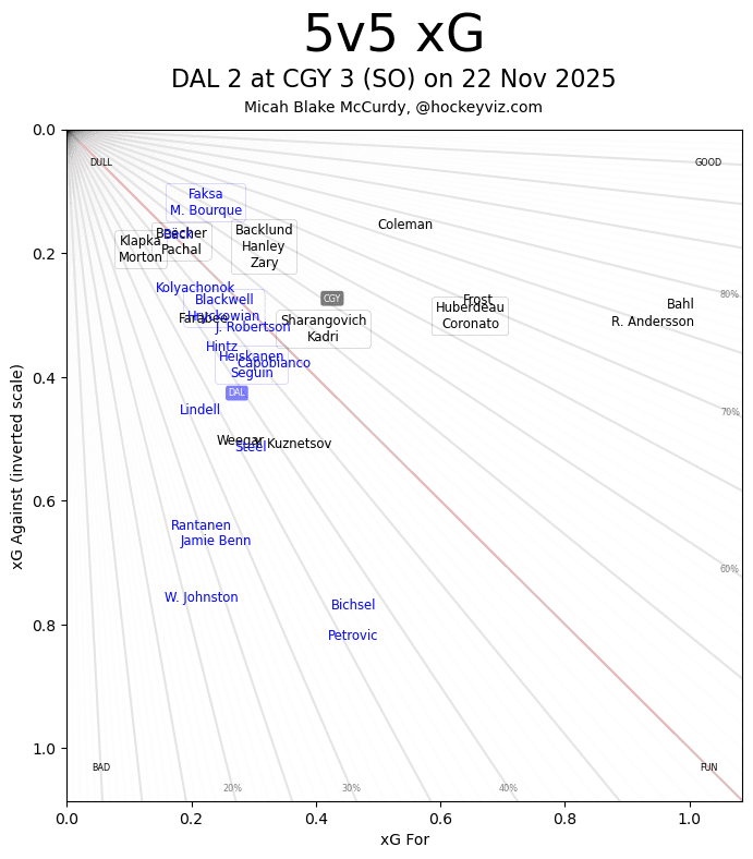 (Stats compiled from Naturalstattrick.com // Game Score from Hockeystatcards.com // xG and Under Pressure charts from HockeyViz.com // Game Flow and Shot Heatmap from NaturalStatTrick.com)