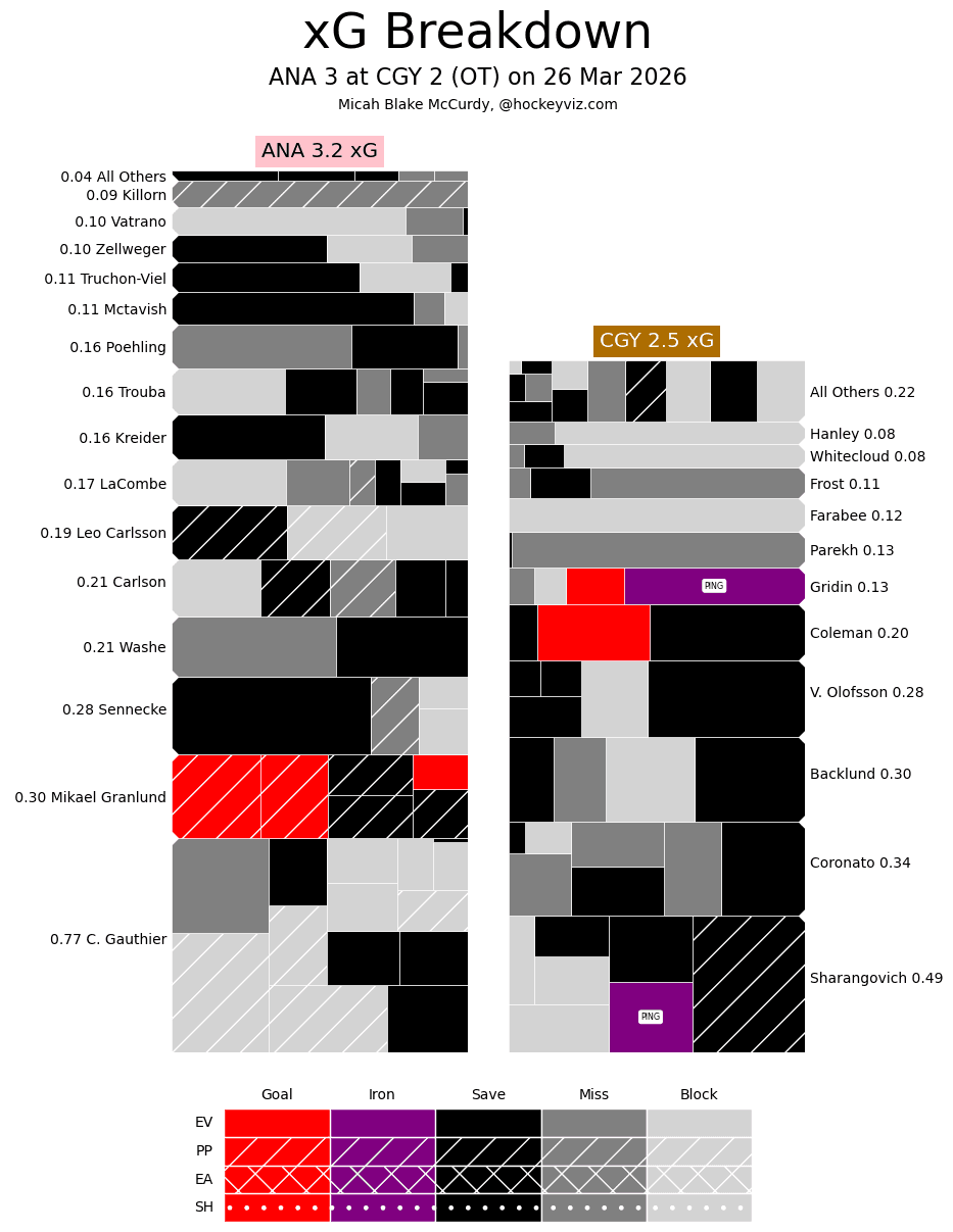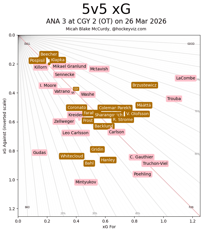 It’s a Team Game – I felt this was a decent game for Calgary, one that keeps up with recent trends of the Flames taking extra risks to try and earn prime scoring chances. The effect that Matvei Gridin is starting to have on this roster, giving the Flames a genuine offensive threat that isn’t afraid to get creative to find space to operate, is becoming quite large. There was a lot of back and forth early before the Ducks started registering a more consistent attack in the second period. That continued right until the end, something that this new Ducks team is used to doing, eventually tying things and sending it to overtime. The kids made some great plays, there were some growing pains, and Devin Cooley was excellent – no matter the score it was another game that provided some entertainment value upon watching.