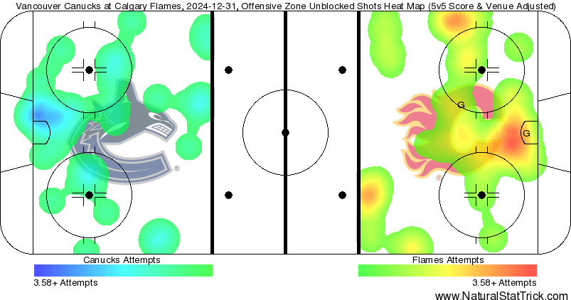 In The Crease – Dustin Wolf, once again, stopped everything at 5v5. The opposition seemingly always needs some sort of aid to beat this young man because without an advantage it’s extremely difficult to defeat him. Calgary does a tremendous job of limiting opportunities and blocking as many as they can. Play like that sure makes it easier on the goaltending – it’s a contributing reason to why both Wolf and Dan Vladar have quality stats this season. Against the Canucks Wolf faced 1.69 expected goals against and only got beat by a deflection while shorthanded. Brilliant.