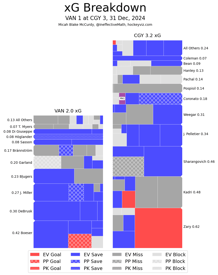 NHL GameScore Impact Card for Calgary Flames on 2024-12-31: