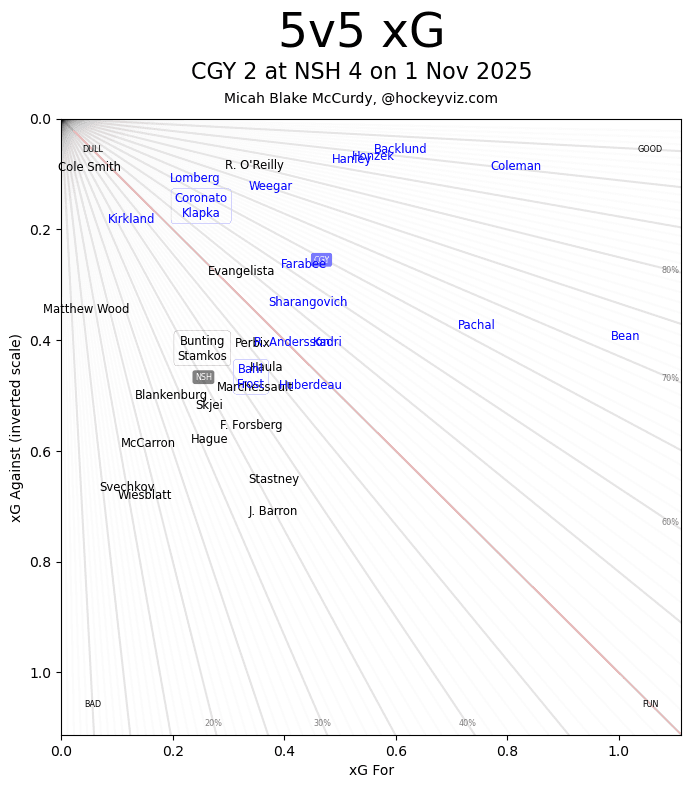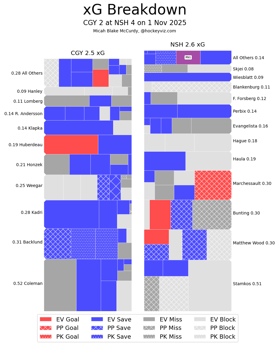 (Stats compiled from Naturalstattrick.com // Game Score from Hockeystatcards.com // xG and Under Pressure charts from HockeyViz.com // Game Flow and Shot Heatmap from NaturalStatTrick.com)