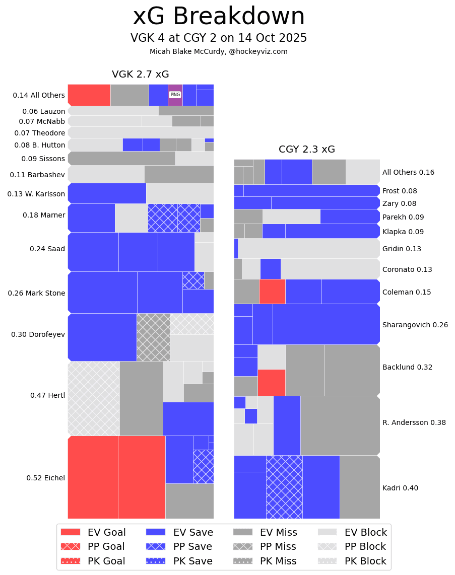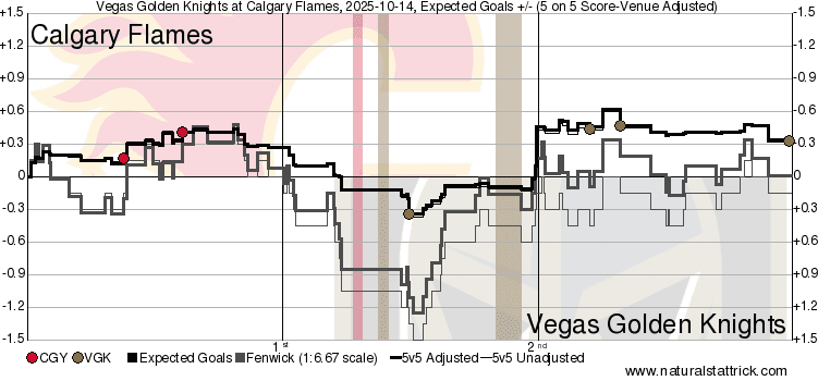 It’s a Team Game – The start of the game went quite well for the Flames. They scored their two goals and were able to go shot for shot with Vegas as the two teams exchanged chances. Both goals were off good shots and not some random bounces – another positive. Weird that it took four games for that to happen, but this team will take the goals however they come. It’s already got the same feel as last year where if they can’t score at least three goals points will be next to impossible to come by. The third period – that’s where the defensive woes showed up. Multiple positioning errors, bad breakout execution, a lack of pressing on the forecheck. Not a lot was going right. A complete turnaround from the start where they had everything working well. Have to find a way to put together a 60-minunte effort