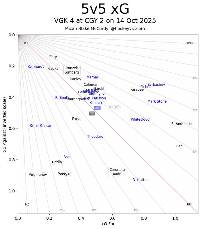 (Stats compiled from Naturalstattrick.com // Game Score from Hockeystatcards.com // xG and Under Pressure charts from HockeyViz.com // Game Flow and Shot Heatmap from NaturalStatTrick.com)