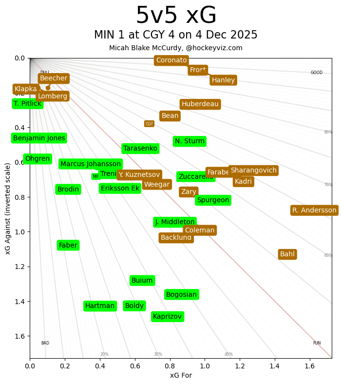 (Stats compiled from Naturalstattrick.com // Game Score from Hockeystatcards.com // xG and Under Pressure charts from HockeyViz.com // Game Flow and Shot Heatmap from NaturalStatTrick.com)
