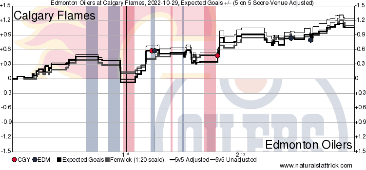 #NHL GameScore Card for Edmonton Oilers @ Calgary Flames on 2022-10-29: #LetsGoOilers #Flames #CofRed