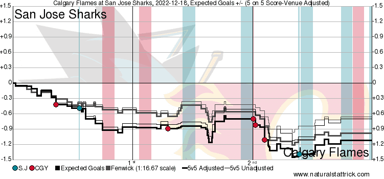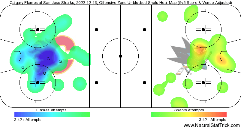 Taken By Chance – Noah Hanifin (81.83 SCF% // 86.29 HDCF%) led the rearguards and Blake Coleman (74.26% // 80.34%) paced the forwards. Rasmus Andersson (78.87% // 79.52%) led everybody with over six high danger chances himself. Remember this doesn’t mean that person got 6 chances all off his stick, they were just on the ice for one of the high danger chances that occurred. If the team is attacking the middle of the ice like they did tonight everybody ends up with great metrics.