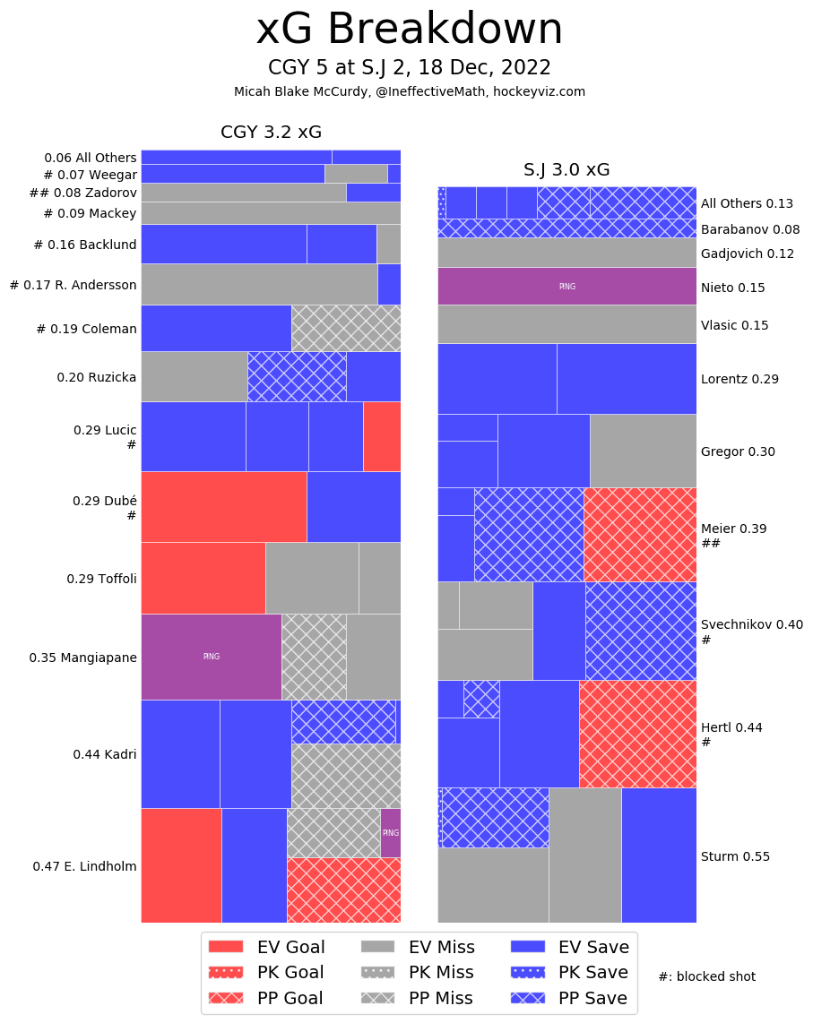(Stats compiled from Naturalstattrick.com // Game Score from Hockeystatcards.com // xG and Under Pressure charts from HockeyViz.com // Game Flow and Shot Heatmap from NaturalStatTrick.com)