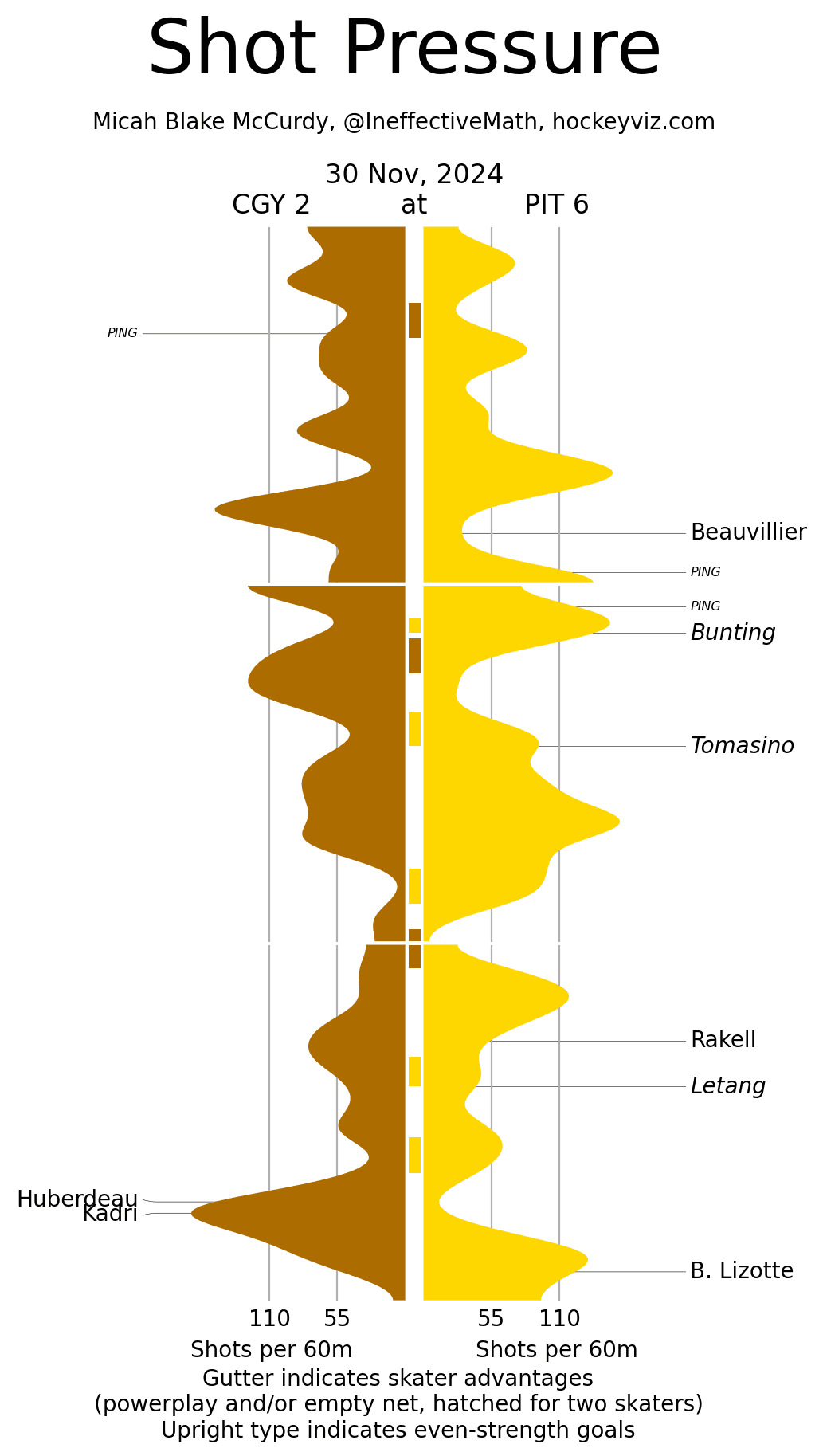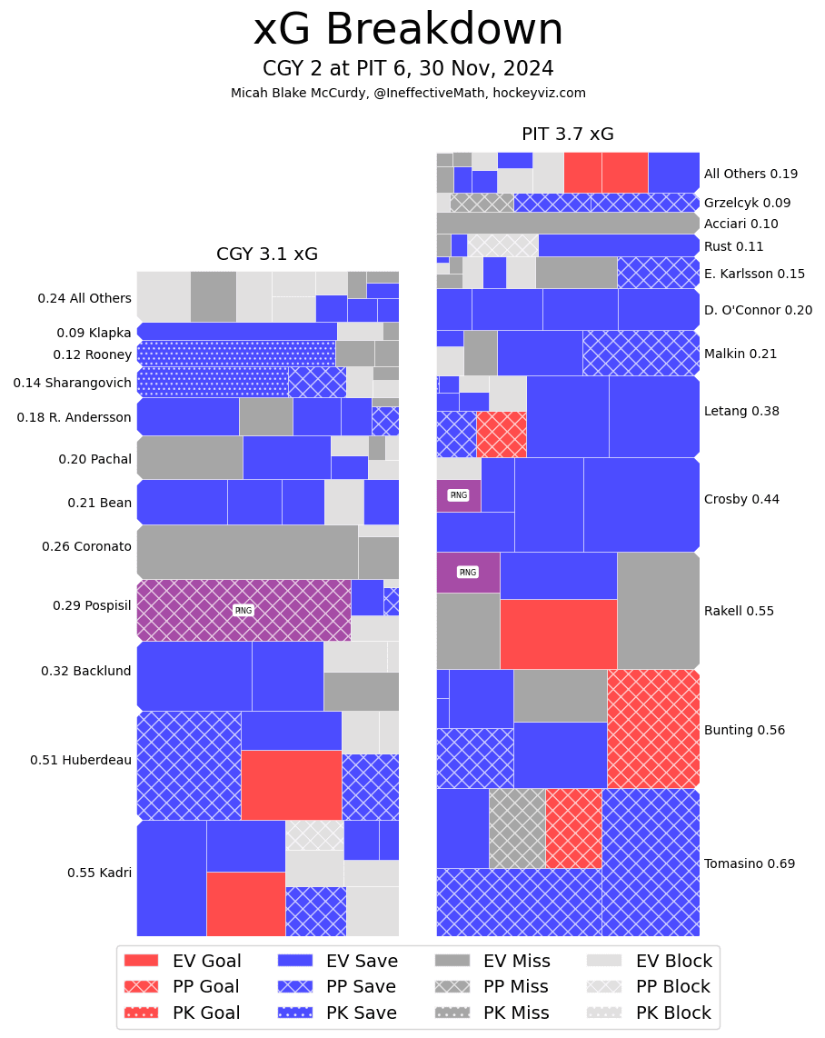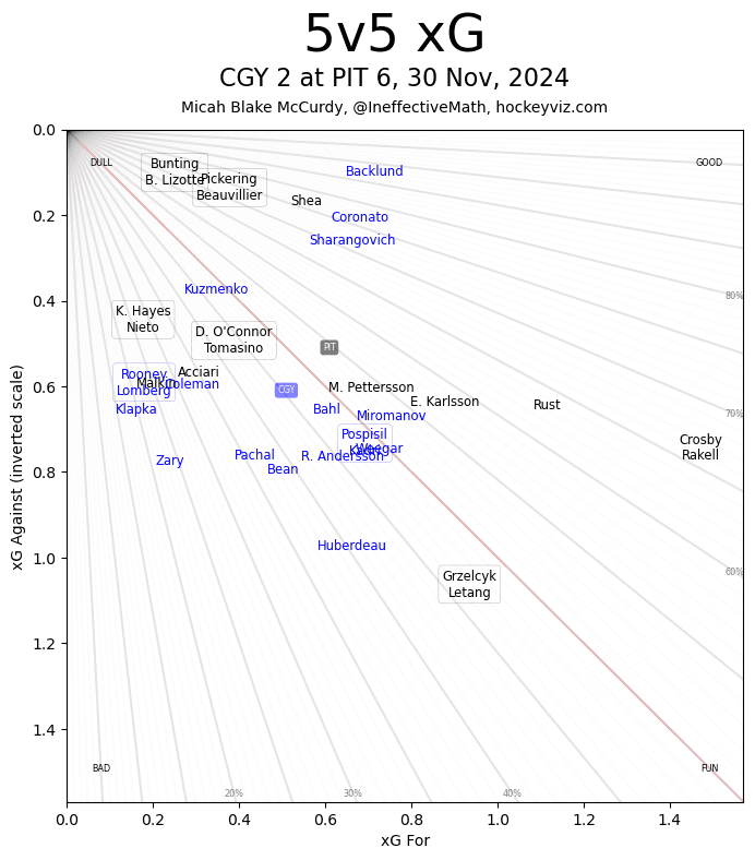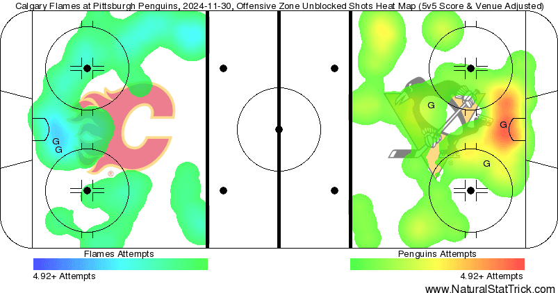 (Stats compiled from Naturalstattrick.com // Game Score from Hockeystatcards.com // xG and Under Pressure charts from HockeyViz.com // Game Flow and Shot Heatmap from NaturalStatTrick.com)
