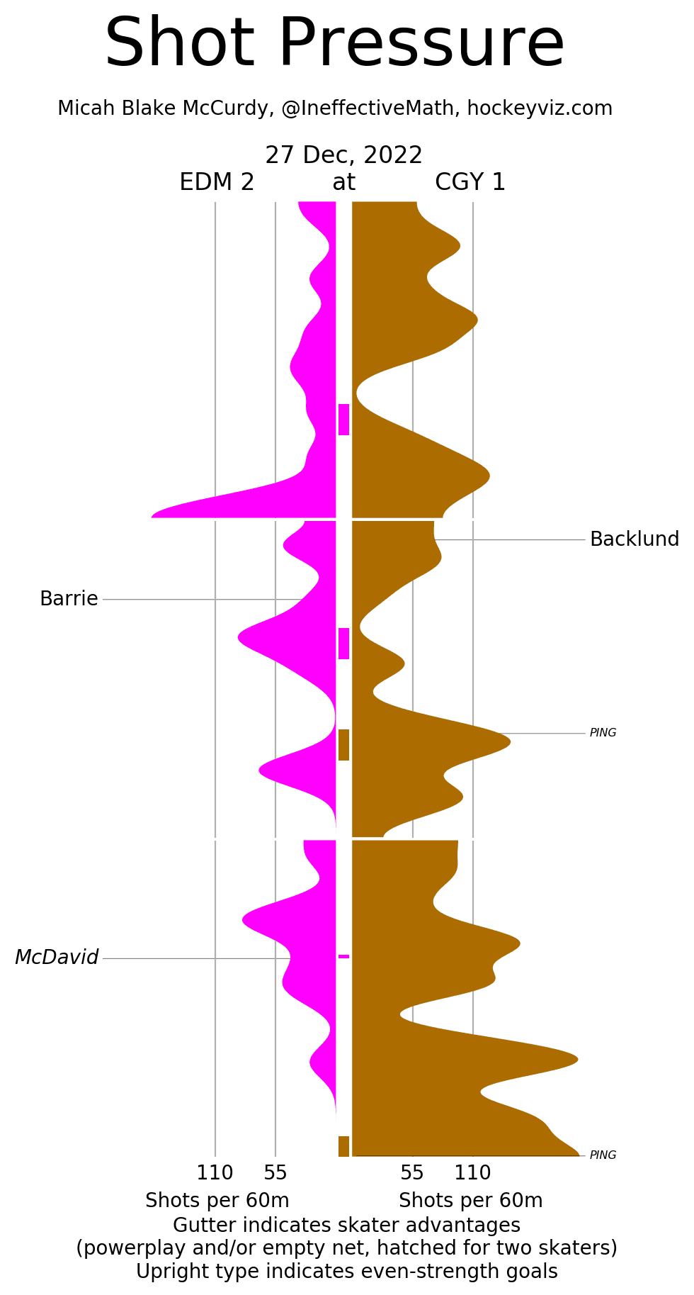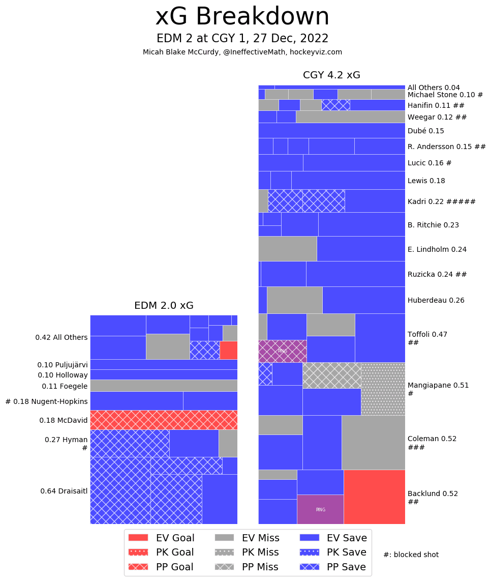 (Stats compiled from Naturalstattrick.com // Game Score from Hockeystatcards.com // xG and Under Pressure charts from HockeyViz.com // Game Flow and Shot Heatmap from NaturalStatTrick.com)