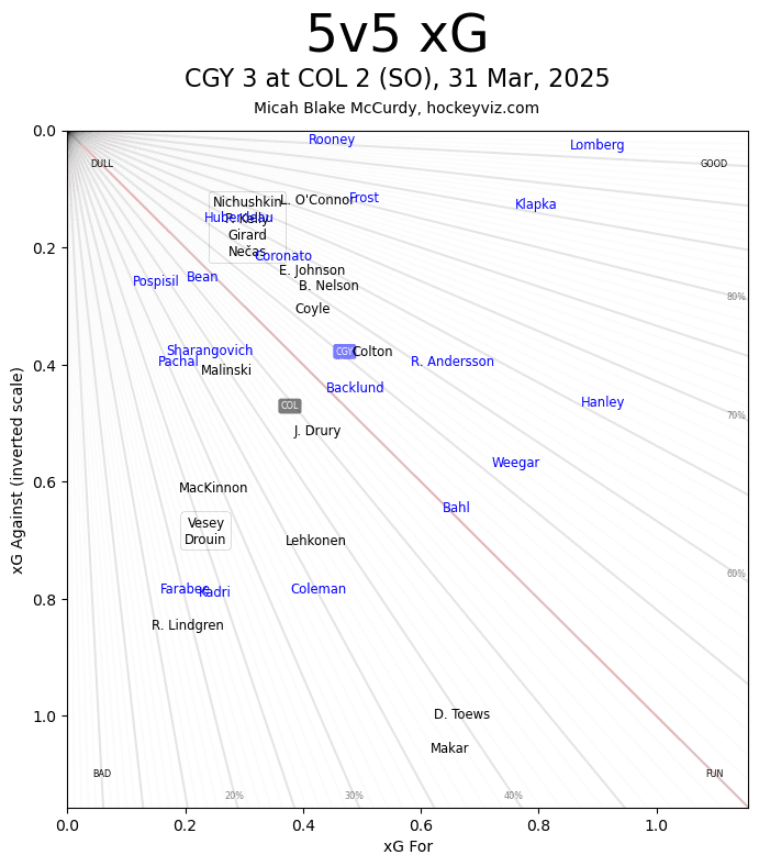 (Stats compiled from Naturalstattrick.com // Game Score from Hockeystatcards.com // xG and Under Pressure charts from HockeyViz.com // Game Flow and Shot Heatmap from NaturalStatTrick.com)