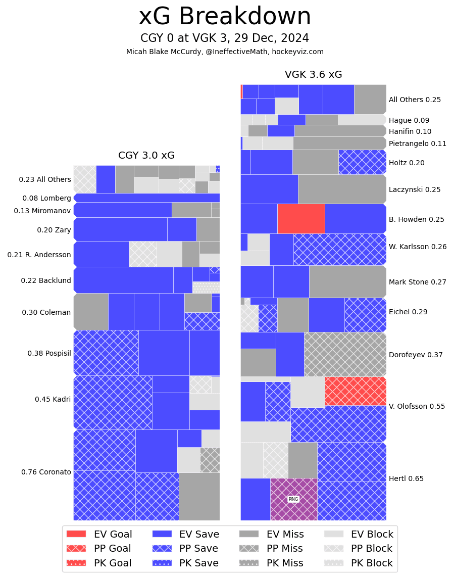 (Stats compiled from Naturalstattrick.com // Game Score from Hockeystatcards.com // xG and Under Pressure charts from HockeyViz.com // Game Flow and Shot Heatmap from NaturalStatTrick.com)