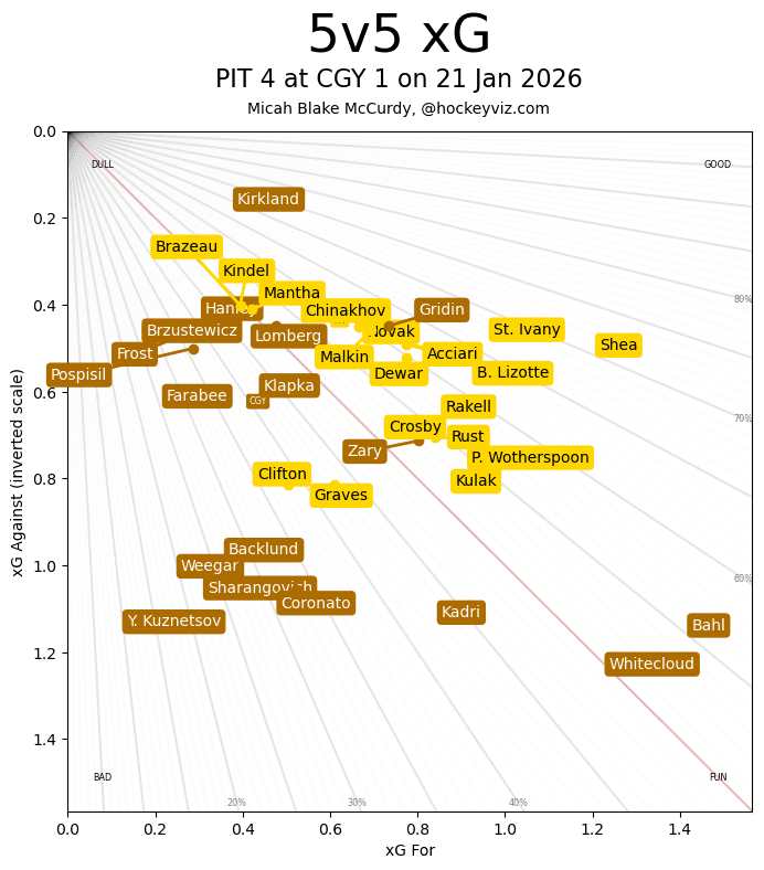(Stats compiled from Naturalstattrick.com // Game Score from Hockeystatcards.com // xG and Under Pressure charts from HockeyViz.com // Game Flow and Shot Heatmap from NaturalStatTrick.com)