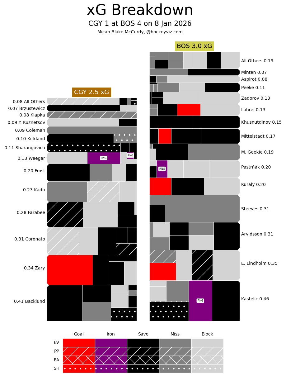 (Stats compiled from Naturalstattrick.com // Game Score from Hockeystatcards.com // xG and Under Pressure charts from HockeyViz.com // Game Flow and Shot Heatmap from NaturalStatTrick.com)