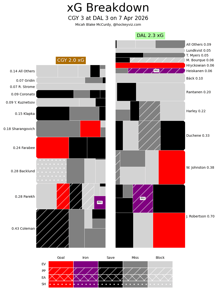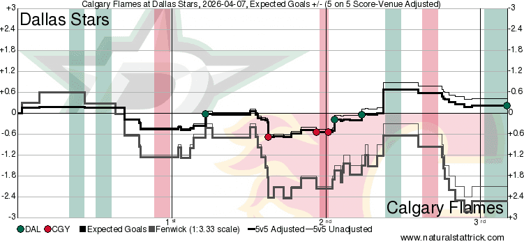 It’s a Team Game – This was not the case of the Flames being opportunistic, or the Stars goaltender having an off night. No, this Flames team gave the Dallas Stars one heck of a fight for the first 40 minutes, almost getting themselves into a spot where the Stars could not recover. They were aggressive in getting to the middle of the ice at 5v5, are starting to utilize the kids better on the powerplay, and are ending up with more than 2 goals in a game more frequently. This post-deadline approach to offence is one that has been an absolute pleasure for myself down the stretch – it really is great to see an NHL coach adapt his system to better suit the needs of the team. That does not always happen, so kudos to Huska for this improved style which has led to improved results.
