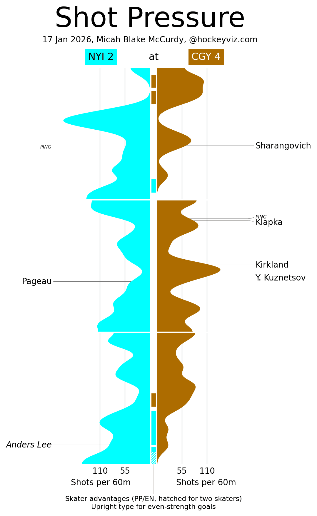 (Stats compiled from Naturalstattrick.com // Game Score from Hockeystatcards.com // xG and Under Pressure charts from HockeyViz.com // Game Flow and Shot Heatmap from NaturalStatTrick.com)