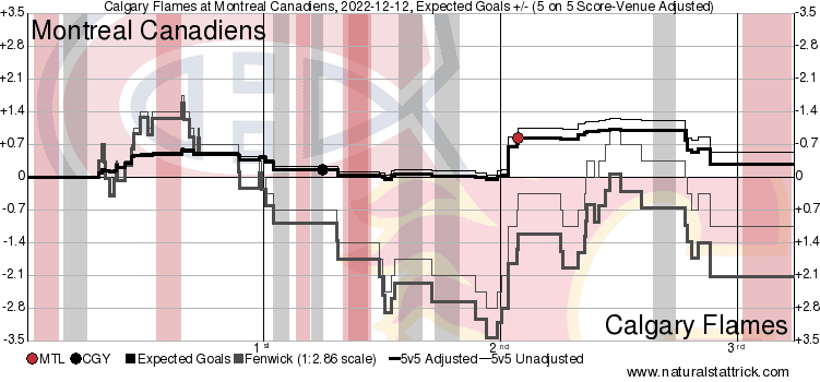 In The Crease – What else can you say but bravo. I feel bad for Markstrom because the Flames sure let the Habs get all sorts of quality looks uncontested in front of the net. The only one that got by him was from a pass that should have been covered out of the corner from Slavkovsky. Can’t let 10 chances from within the crease and expect Markstrom to stop all of them, even though he almost did. The shootout is never his forte but he almost had Suzuki’s floater. 2.18 expected goals against with only the highest of dangerous chances getting behind him. 11/10 performance.