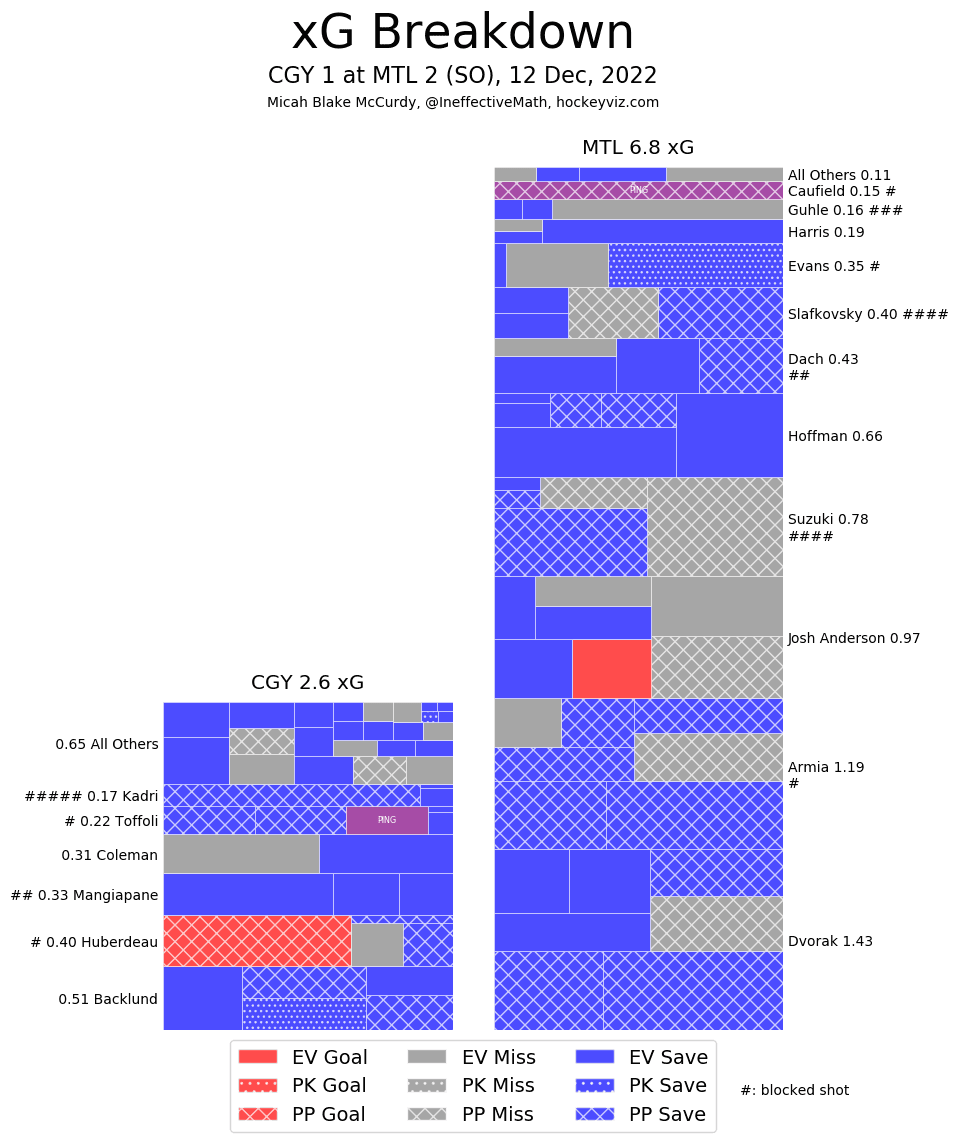 Every single one of those blue boxes under MTL with the diagonal lines was a PP save made by Markstrom. 14 of them there as MTL peppered him with enough chances to feasibly score 7 goals.
