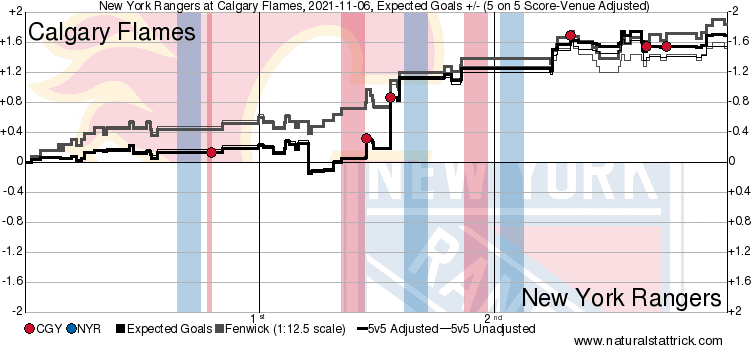 It’s a Team Game – Flames got out chanced in the high danger area in the first period, and still allowed 9 high danger chances against them overall, so there are things to clean up. Some uneasy turnovers at the offensive blueline that might get missed because of everyone’s commitment to backcheck. That’s really the extent of my criticism tonight though. Honestly Rangers ran out of gas in the third and Calgary made them pay.