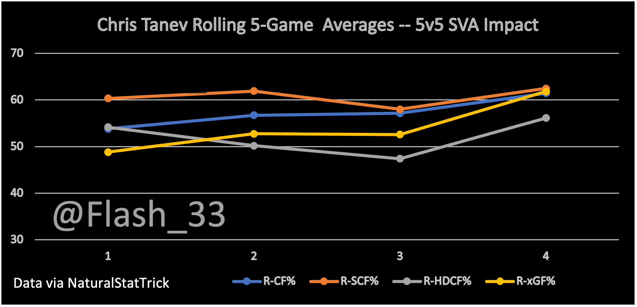 Player Spotlight – Chris Tanev – Every now and then I like to use this section not to shoutout someone for what they did in the game, but someone who’s just played consistently good all around. Chris Tanev is off to an absolute fantastic start rivalling what he and Hanifin did to start the last campaign. He’s reliably defending some of the best competition in the NHL on a nightly basis and making it look natural. If there ever was a signing, I was wrong about it was his. I assumed he’d be serviceable for two years before falling off in play, but he’s been defensively elite so far with no hints of dropping off anytime soon. Go off Tanev, you’re killing it.