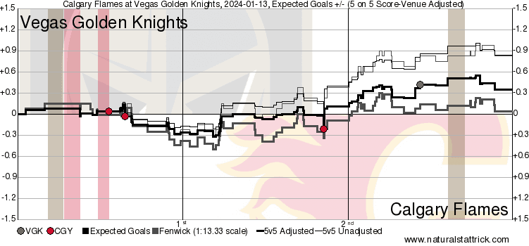 The Calgary Flames edged out the Vegas Golden Knights in a defence first clash on Saturday night. After some early power plays Calgary was able to snag 5v5 momentum and keep it into the early portion of the second. By the time Vegas scored in the third they had crawled back into the lead of the quality share, but Jacob Markstrom proved to be too much of a test for the competition. Calgary gets yet another win to move to 9-4-2 In their last 15 games, 20-18-5 overall.