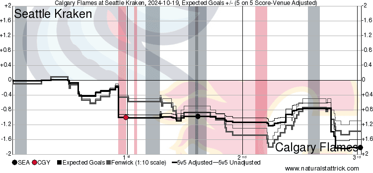 The Calgary Flames win streak will end at four after a goaltender driven, low event, mistake filled match against the Seattle Kraken.