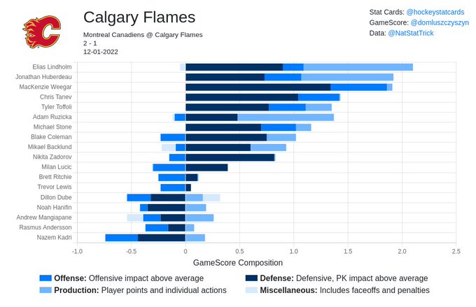 #NHL GameScore Impact Card for Calgary Flames on 2022-12-01: #Flames #CofRed