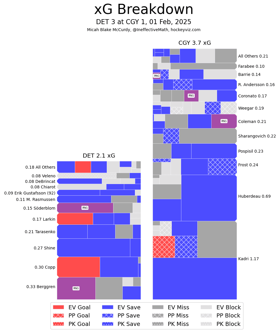 (Stats compiled from Naturalstattrick.com // Game Score from Hockeystatcards.com // xG and Under Pressure charts from HockeyViz.com // Game Flow and Shot Heatmap from NaturalStatTrick.com)