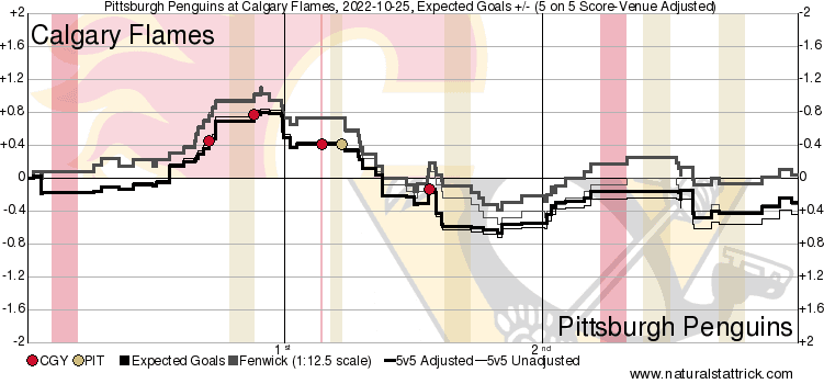 A great first for Calgary – a great second for the Pens – and a solid third for Calgary. Two points Flames.
