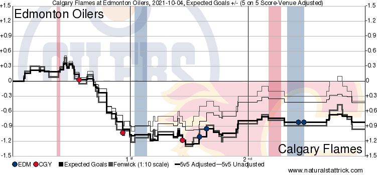 It’s a Team Game – The high numbers despite getting outplayed in the second period translate into: when they were good, they were really good – they just didn’t maintain that pace throughout the whole contest. The Oilers led significantly in the second frame for all four statistics we have listed above. The Flames did good in the first, and alright in the third – the middle was where they lost their early momentum.