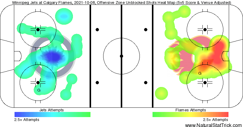 Flames were in the Jets kitchen heavily. It’s so satisfying to see the forwards push the slot for shot attempts – they did this more often than not this preseason. Connor Hellebuyck was hard to beat – Jets got better on defence this year, might get better defensively themselves after a few more weeks to mesh.