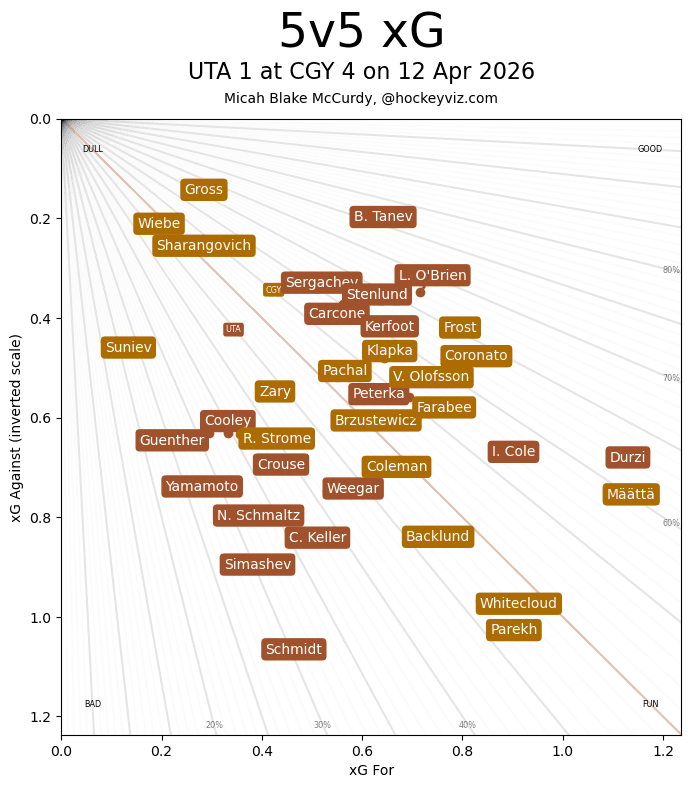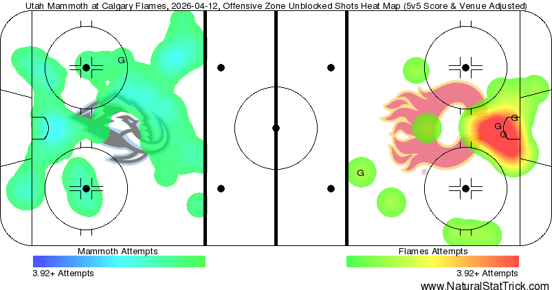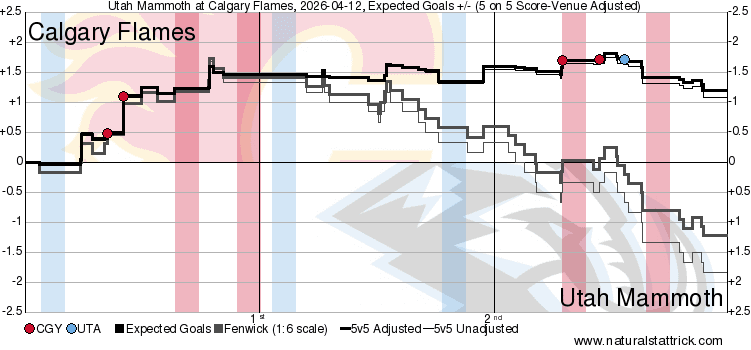 It’s a Team Game – After six years of these my simple favourite category for the Flames to lead in is high danger chances. Overall, the number of attempts is great, as is quality of chances, but the amount of high danger chances you earn showcases how that game went for you and your line quite well. Calgary started things off against Utah with a 10-2 advantage in 5v5 high danger chances. They would end up with the advantage in that category for all three periods, finishing with a grand total of 14 to the opponents 4. Calgary got that early lead then was able to dictate a lot of play afterwards. The special teams still need some work, but the flashes of skill that could one day come together are there, it’s just not a finished product yet.