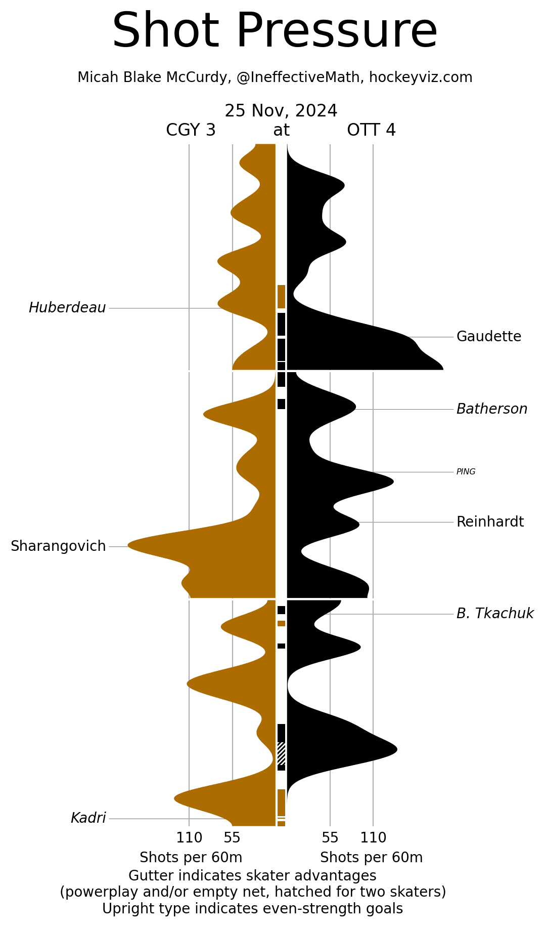 (Stats compiled from Naturalstattrick.com // Game Score from Hockeystatcards.com // xG and Under Pressure charts from HockeyViz.com // Game Flow and Shot Heatmap from NaturalStatTrick.com)
