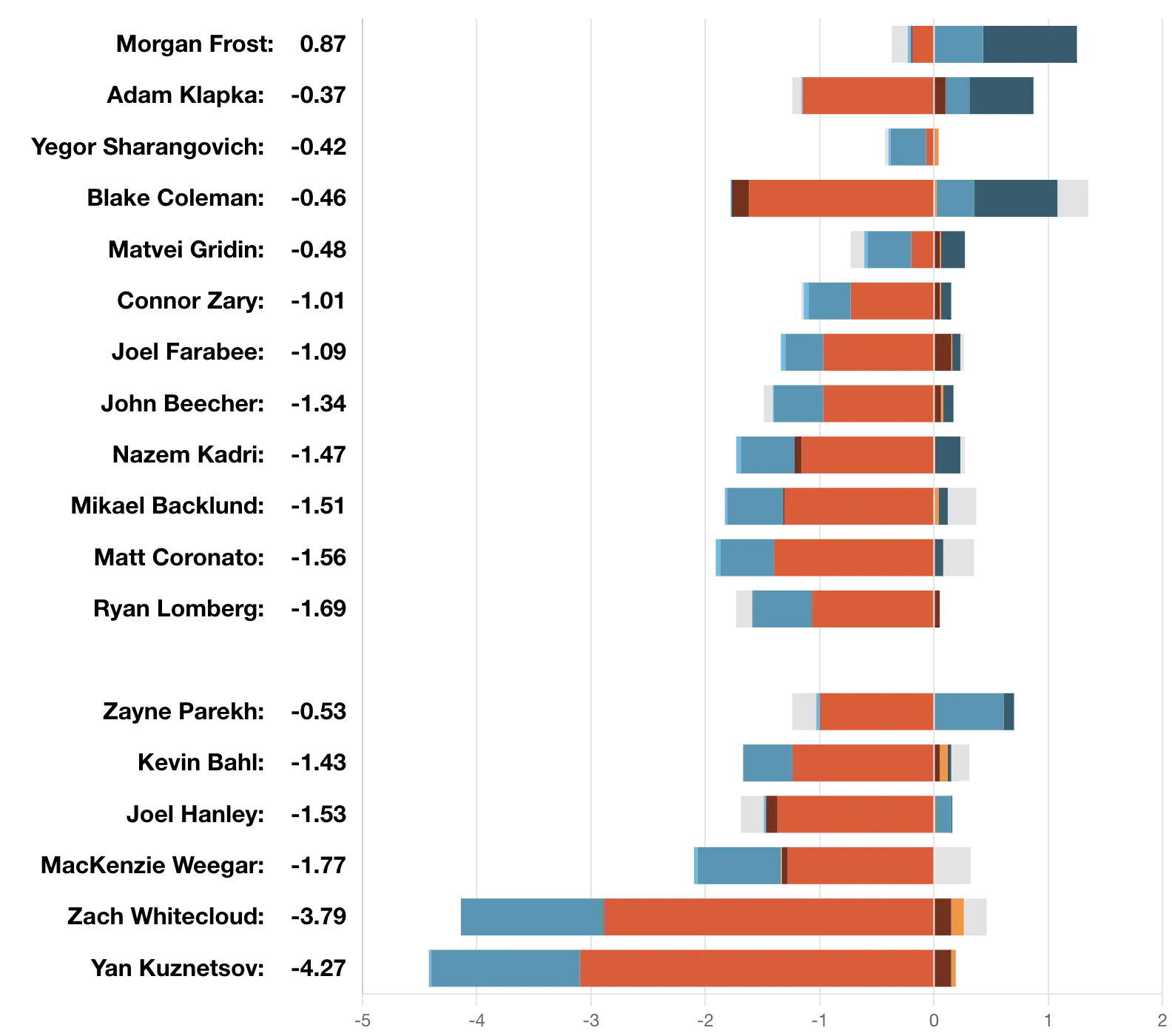 xGF% – Parekh (50.73 per cent) clearly stood as the top Flame. MacKenzie Weegar (26.88 per cent) got walked by Matt Duchene and was caught out of position often. Zach Whitecloud (7.77 per cent) also saw his defensive magic come to an end. The overwhelming talent and skill of the Stars was too much for this roster to handle. Even without Mikko Rantanen they deserve to be held in the same esteem as the Colorado Avalanche and the Minnesota Wild. The best of the west.