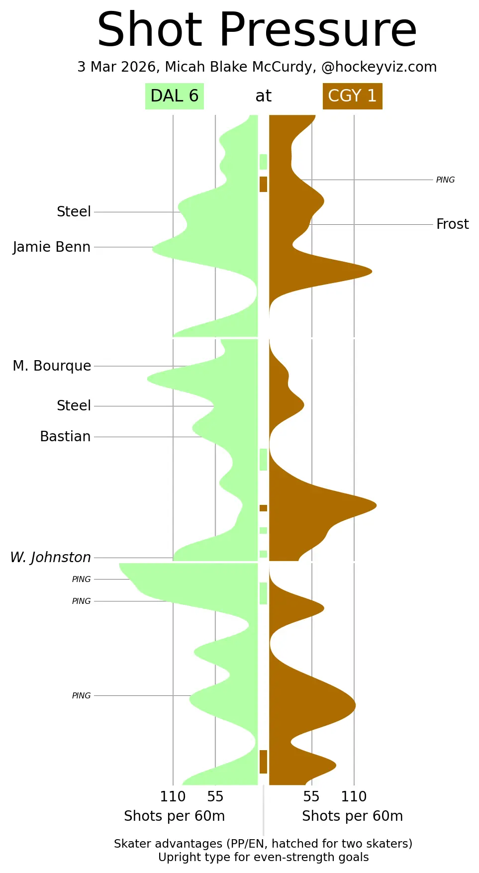 (Stats compiled from Naturalstattrick.com // Game Score from Hockeystatcards.com // xG and Under Pressure charts from HockeyViz.com // Game Flow and Shot Heatmap from NaturalStatTrick.com)