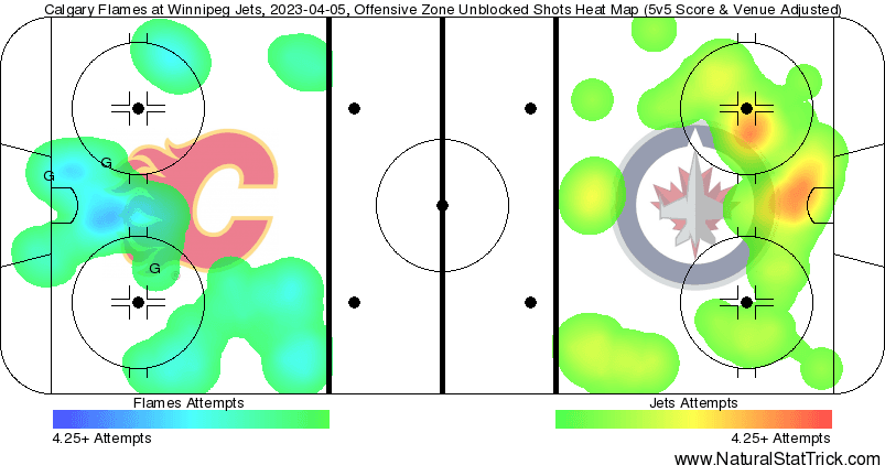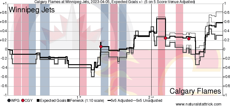 In The Crease – One night it’s up, the next few nights its down, then right when you need it most the quality of play is right where you need it to be. 2.51 expected goals against with no 5v5 goals getting behind Markstrom. I don’t know why he can’t get those extra saves against Chicago or Columbus, but he did it when he needed to do it. Now the Flames need to do their best to try and pass the Jets because a tie won’t cut it.